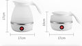 - [Humanized Foldable Design]: Our electric kettle has a capacity of 600ml and weighs 0.6kg. Expand size is 17cm*17*17cm (L*W*H); Folded size is 17*17*10cm (L*W*H). It id portable to put in your suitcase. You can also separate the power cord from the kettle body for more convenient storage.
