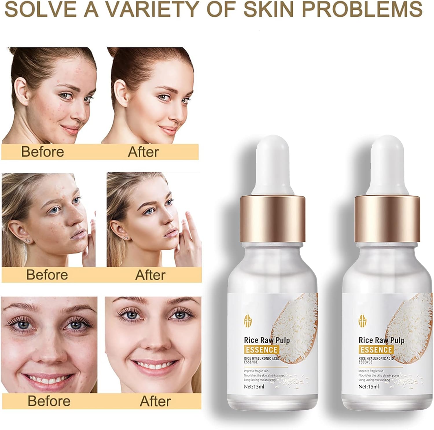 - 5-piece rice skin care set: with rice eye serum, rice toner, rice cleanser and 2 white rice facial essence, this set offers everything you need for a complete facial treatment. This skin care set deeply cleanses, refines pores, eliminates acne, improves the complexion, moisturizes and ensures perfect skin. It is suitable for men and women of all skin types.